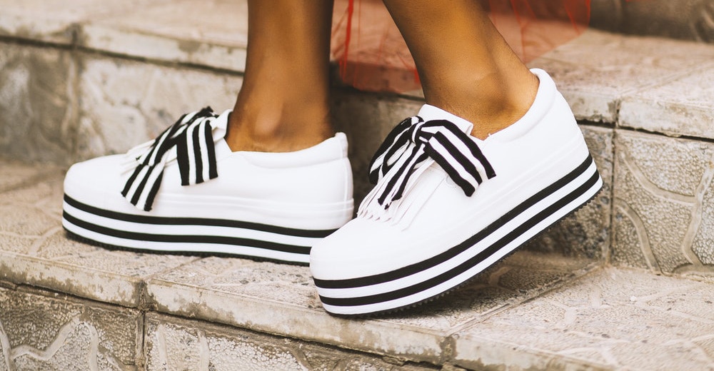 Go for a thick sole when possible: Even a little bit of thickness or extra cushion or rubber material can help, while adding just a touch of a platform look, as it aids in absorbing some of the pressure or shock from walking. You’ll notice a remarkable difference in the pain you experience when you make this change.
