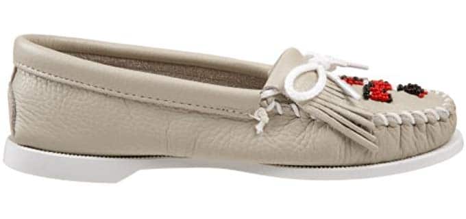 Minnetonka is one of the top brands in Moccasin style shoes, that boast moccasin shoes in their original vintage fashion. The Vintage Kilty Sude range offers many color options to choose from and comes with a durable rubber sole that offers excellent grip and is likewise ideal for driving with.